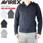 AVIREX 正規取扱店 6153641 アビレックス アヴィレックス 定番 デイリー ロングスリーブ リブ フルジップ パーカー メンズ トップス 無地 部屋着 ミリタリー