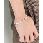amp japan(アンプジャパン)淡水パール ブレスレット真珠 天然 アフリカンビーズ 真鍮 ビーズロゴ チャーム ボールチェーンメンズ レディースハンドメイド アクセサリーNHHK-422【ギフト包装対応】【送料無料】