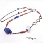 アンティークガラスビーズネックレス アンティークビーズ ガラス 天然石 ネックレス ビンテージ //TAKiques