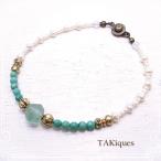 アンティークガラスビーズ&ターコイズ&パールアンクレット 天然石 ビンテージ //TAKiques
