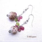 アンティークガラスビーズ&パール・ローズクォーツピアス アンティークビーズ ガラス 天然石 ネックレス ビンテージ //TAKiques