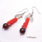 アンティークガラスビーズ&ジェムストーンピアス 天然石 ビンテージ //TAKiques