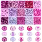 5190個 ガラス製 シードビーズ 15色 3mm パープル ピンク ガラスビーズ 手芸ビーズ 小さなクラフトビーズ 丸形 MDM( パープル)