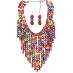 【並行輸入品】COLORFUL BLING ボヘミアン アフリカン木製ビーズビブステートメントチョーカーネックレス ロングマルチストランド チャンキー