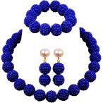 【並行輸入品】aczuv ナイジェリア ウェディング アフリカン ビーズ ジュエリー セット 模造真珠 ネックレス イヤリング 女性用