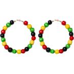 【並行輸入品】大きな木製フープ レゲエ ラスタ アフリカンビーズイヤリング 女性用