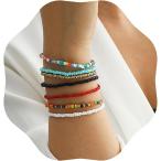 【並行輸入品】JWICOS ボヘミアンビーズ アフリカンブレスレット レディース カラフルストレッチシードビーズ レインボーブレスレット ガラスビーズ
