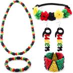 【並行輸入品】PAFUWEI アフリカンジュエリー5点セット レディース マルチカラービーズ ジャマイカブレスレット ダングル アフリカンイヤリング