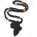 【並行輸入品】Aonklot アフリカンビーズネックレス ヒップホップ アフリカ地図ペンダントネックレス 木製ビーズネックレスチェーン メンズ天然木製
