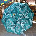 パーニュ 長傘 日傘 アフリカンプリント パラソル エメラルドグリーン うずしお