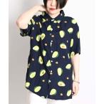 ブラウス シャツ アボカド柄 総柄 半袖ブラウス レギュラーカラー レディース メンズ