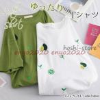 Tシャツ レディース 半袖 刺繍 アボカド柄 ドロップショルダー ゆったり カジュアル 夏新作 トップス カットソー