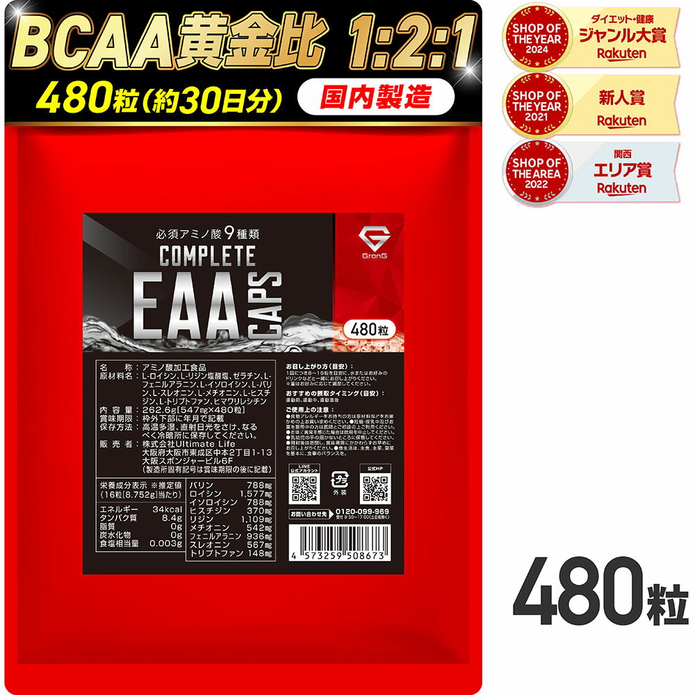 【12/1は先着クーポン15%OFF+ポイント20倍】GronG(グロング) COMPLETE EAA カプセル 480粒 人工甘味料不使用 甘味料不使用 必須アミノ酸 全9種類配合