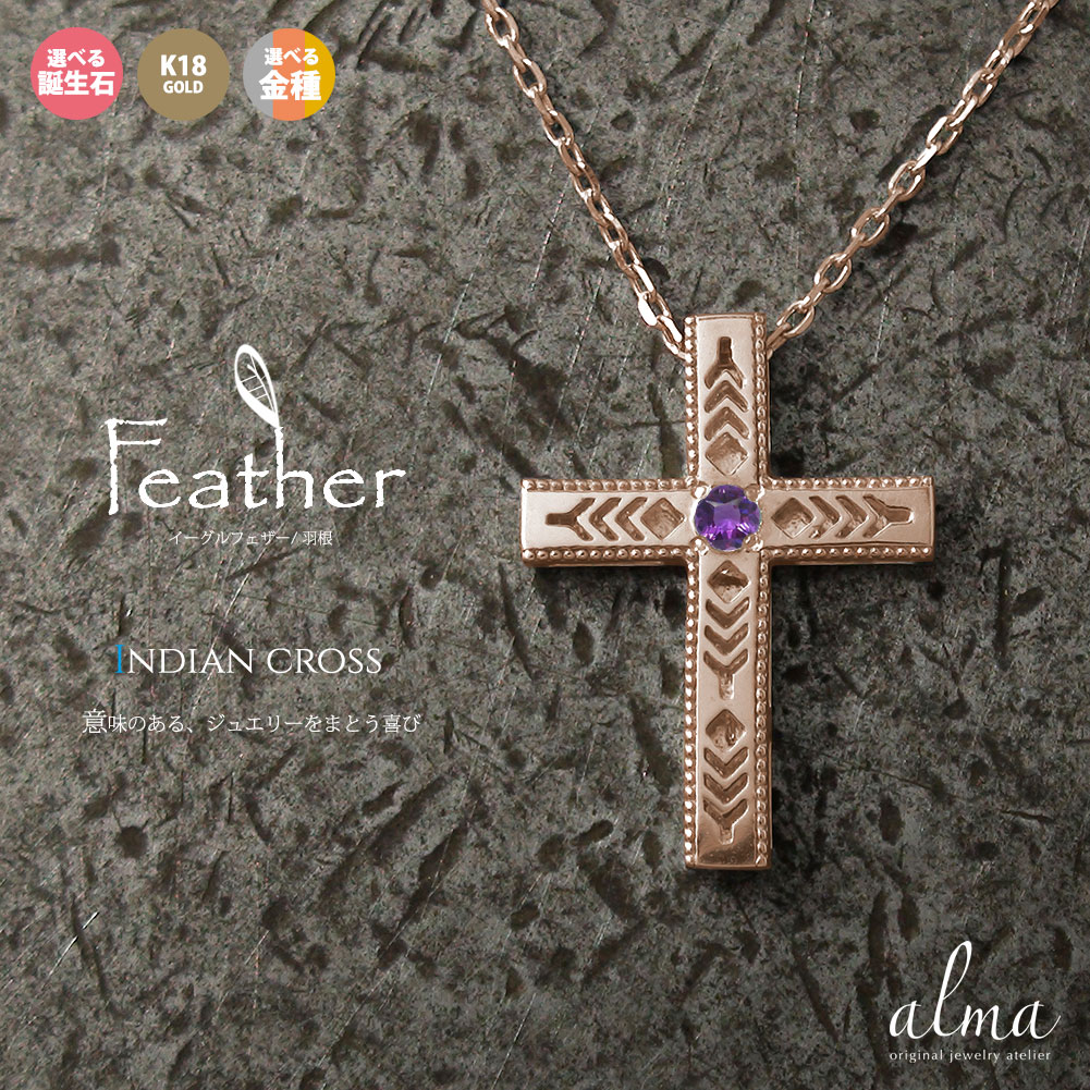 【スーパーセール期間 10%off】クロス ネックレス 18金 インディアン レディース メンズ ネイティブアメリカン 誕生石 十字架 美しい 羽根 羽 フェザー k18 18k ゴールド ペンダント ジュエリー クリスマス プレゼント Xmas 2025