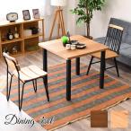 ダイニングテーブル 2人掛け ダイニングテーブルセット 正方形 80cm アメリカンテイスト ダイニング 3点セット 異素材 MIX ニレ 無垢 木製 スチール脚