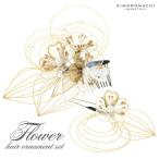 成人式 髪飾り コームとUピン 2点セット 「花ごころ アメリカンフラワー ゴールド」ヘアアクセサリー 成人式 卒業式 謝恩会 振袖 袴(メール便不可)