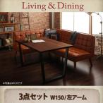 アメリカンヴィンテージ リビングダイニングセット 3人 3点セット(テーブル+ソファ1脚+アームソファ1脚) 左アーム W150