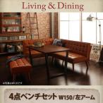 アメリカンヴィンテージ リビングダイニングセット 5人 4点セット(テーブル+ソファ1脚+アームソファ1脚+ベンチ1脚) 左アーム W150