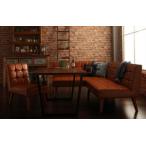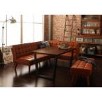 アメリカンヴィンテージ リビングダイニングセット 5人 4点セット(テーブル+ソファ1脚+アームソファ1脚+ベンチ1脚) 右アーム W120