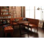 アメリカンヴィンテージ リビングダイニングセット 6人 5点セット(テーブル+ソファ1脚+アームソファ1脚+チェア1脚+ベンチ1脚) 右アーム W120
