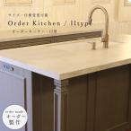 【 アメリカン ホテルライク シリーズ 】人大 天板 使用 キッチン II型 クォーツストーン アイランド グレージュ 巾木 収納付き リフォーム 新築