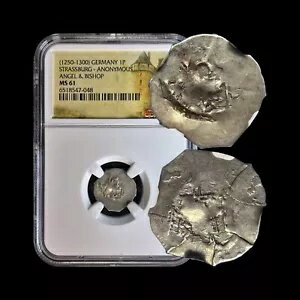 ドイツ。 1140、デニール、シルバー - NGC MS61 - アルザス、ストラスブール、司教と天使