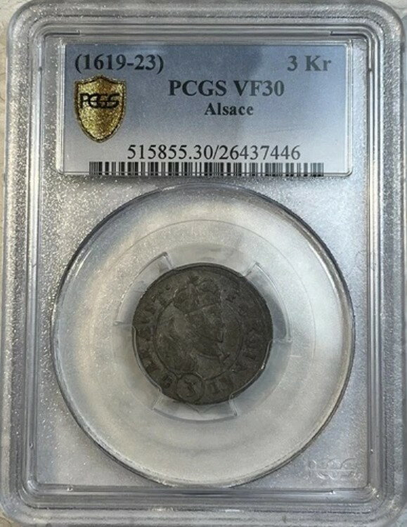 アルザス ドイツ都市国家 1619 - 1623 シルバー 3クロイツァー PCGS認定 VF 30 ポップ1