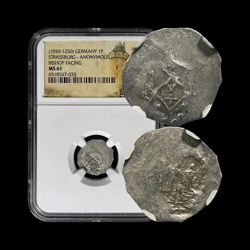 ドイツ。1223、デニール、銀 - NGC MS63 - アルザス、シュトラスブルク、司教教会