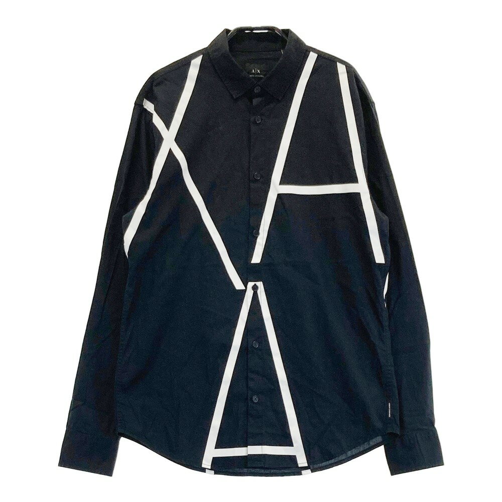 ARMANI EXCHANGE アルマーニエクスチェンジ 長袖 シャツ M ブラック メンズ 古着 中古