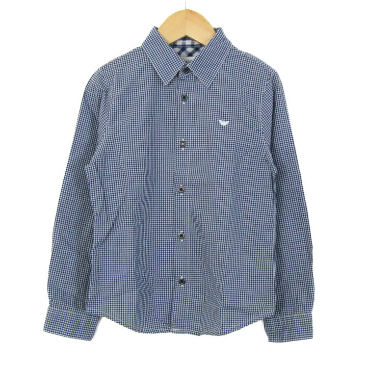 ARMANI アルマーニ 長袖シャツ チェック柄 トップス キッズ 男の子用 6Aサイズ ネイビー×ホワイト 【中古】