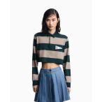 ポロシャツ ポロ 「エンポリオ アルマーニ」Eagle Club クロップドポロシャツ ジャージー オーバーサイズストライプ&パッチ レディース