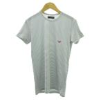 エンポリオアルマーニ EMPORIO ARMANI UNDER WEAR ボーダー カットソー Tシャツ ロゴ 青 ブルー 白 ホワイト 約M ☆AA★