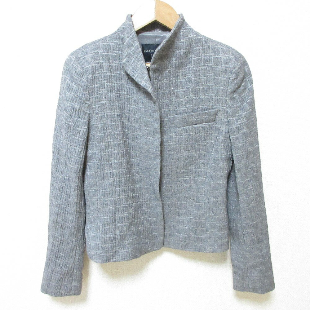 【楽天スーパーSALE40%OFF】【中古】美品 EMPORIO ARMANI エンポリオアルマーニ ICON 2022年モデル ストレッチ スタンドカラー ツイードジャケット 38 グレー レディース Luxs ブランド古着のリュクス