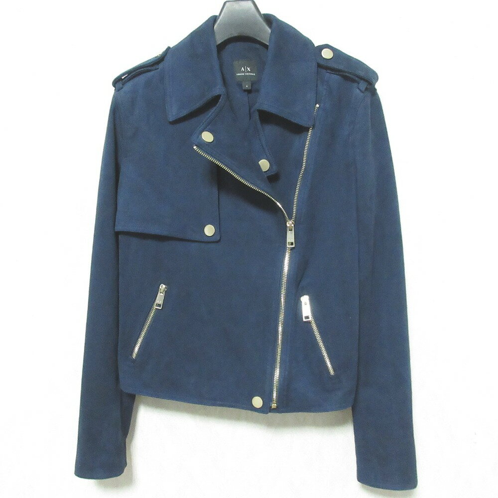 【楽天スーパーSALE30%OFF】【中古】 美品 ARMANI EXCHANGE アルマーニエクスチェンジ エコスエード ライダースジャケット ブルゾン 6GYB18 YNHMZ S ネイビー レディース Luxs ブランド古着のリュクス