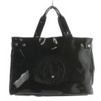アルマーニ ジーンズ ARMANI JEANS ハンドバッグ トート PVC エナメル ラインストーン ロゴ 型押し 黒 ブラック