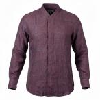 31a26 ARMANI COLLEZIONI アルマーニコレツィオーネ ノーカラーシャツ 長袖 チェック柄 比翼ボタン S パープル メンズ 男性用o07t