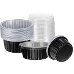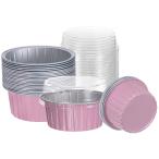 uxcell 25個入り 蓋付きベーキングカップ 5オンス アルミホイルライナー ミニ使い捨て容器 カップホルダーケースボックス パン デザート ウェ