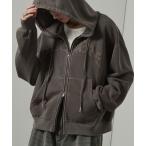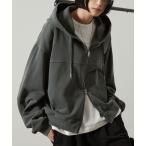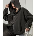 パーカー 「Alfred Alex」ヴィンテージメイクデザイン ピグメント ダメージパッチロゴ ショートダブルジップパーカー メンズ レディース