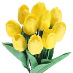 uxcell 18個の人工チューリップ花 ウェディングブーケセンターピーステーブルパーティー装飾用のリアルタッチフェイクチューリップステム(イエロー)