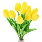 uxcell 15個のチューリップ人工花 ウェディングブーケセンターピーステーブルパーティー装飾用のリアルタッチフェイクチューリップステム(イエロー)