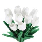 uxcell 18個のチューリップ人工花 ウェディングブーケセンターピーステーブル リアルタッチフェイクチューリップステム人工花(ホワイト)