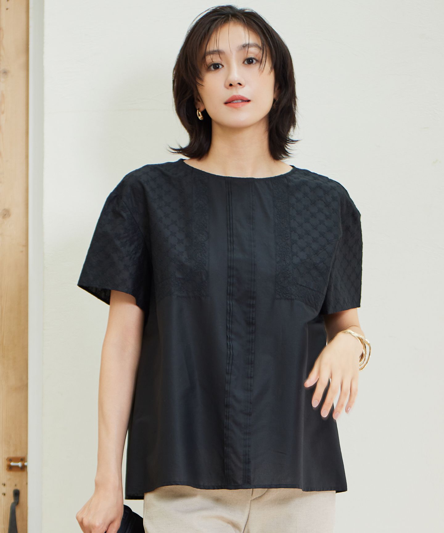 自由区(ジユウク)/【WEB限定・接触冷感・洗える】エンブロイダリーローンプルオーバー ブラウス