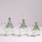 エジプト香水瓶 手吹きガラスの工芸品/ラクダ3頭セット グリーン