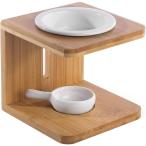 アロマポット 茶香 茶香炉 キャンドルウォーマー アロマウォーマー 木製 陶器 2点セット (ナチュラル, 11.5x12x12cm)