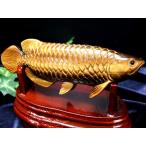 美しいゴールドのシラー アロワナ タイガーアイ 置物 台座付き 幅約138mm 約256g 虎目石 龍魚と呼ばれる古代魚 権力や繁栄、事業の発展の意味を持つモチーフ