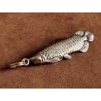 真鍮 アロワナ キーホルダー (二重リング付き)フィッシュ 熱帯魚 キーリング キーチェーン ゴールド ストラップ チャーム ペンダント