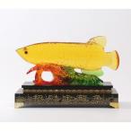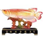 アロワナの置物 龍魚 元宝 台座付き 樹脂製置物 17cm