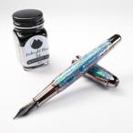Xezo Maestro万年筆、中ペン先。 海洋起源の真珠層と虹色のアワビの殻。 18Kゴールドと純プラチナ