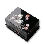 螺鈿の透かし台付小箱 桜に樫鳥 黒