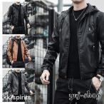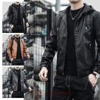レザージャケット フード付き メンズ パーカー ジャケット PU革ジャン ライダース ジャケット シンプル 皮ジャン 秋冬 服